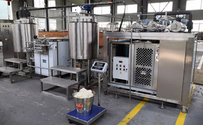原輔料調(diào)配→標(biāo)準(zhǔn)化→高壓均質(zhì)→巴氏殺菌→冷卻→灌裝→冷凍儲藏。