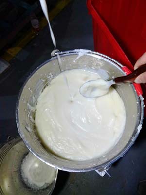 原輔料調(diào)配→標(biāo)準(zhǔn)化→乳化→高壓均質(zhì)→殺菌→急冷→捏合→灌裝→儲(chǔ)藏→熟化。